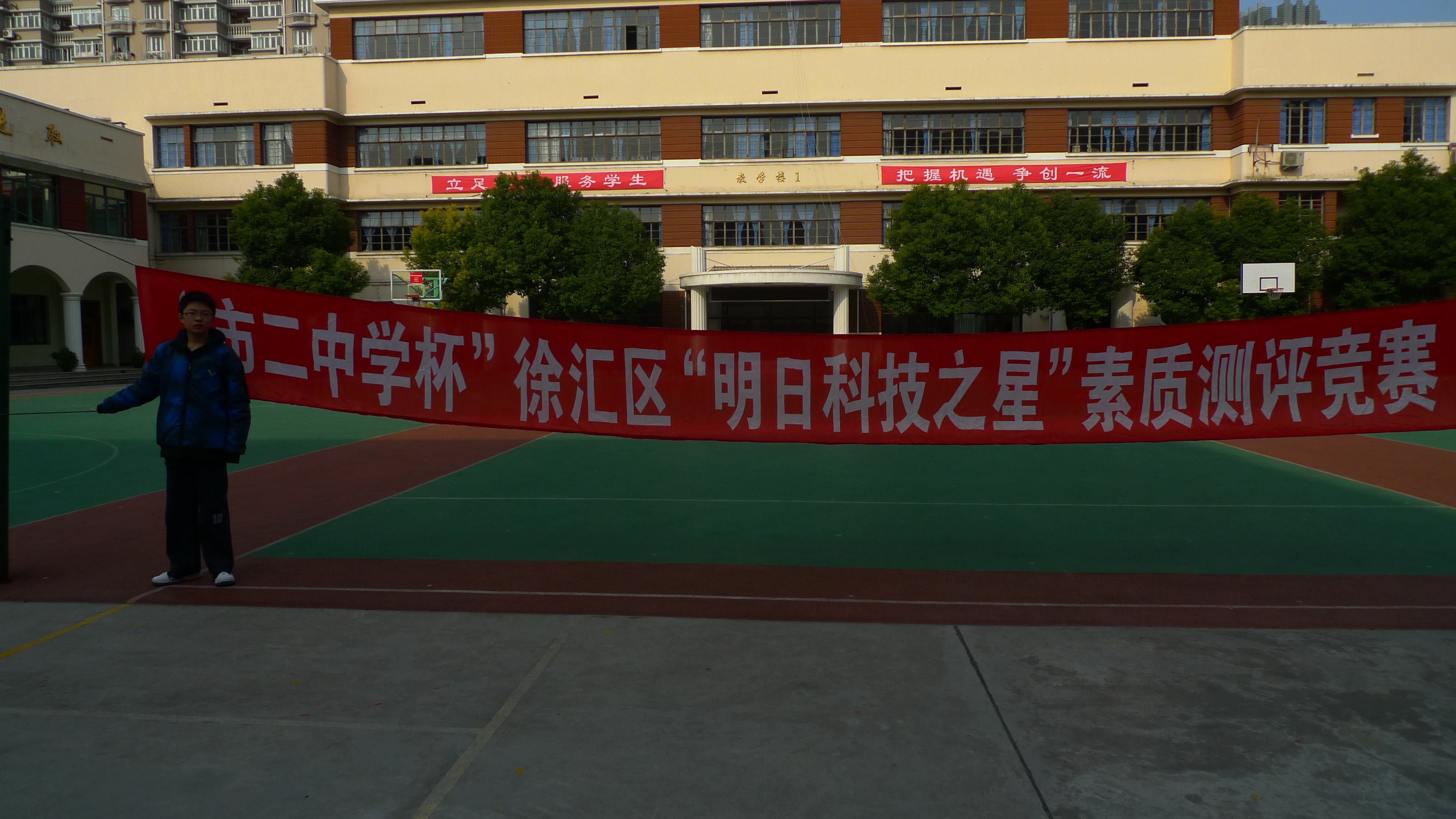 活动竞赛二:“2010年“市二中学杯”暨徐汇区青少年“明日科技之星”评选素质测评”,于25日下午在永康路200号的市二初级中学举行,我校八(1)班曲子建同学和科技总指导李老师,参加了当天的测评活动。